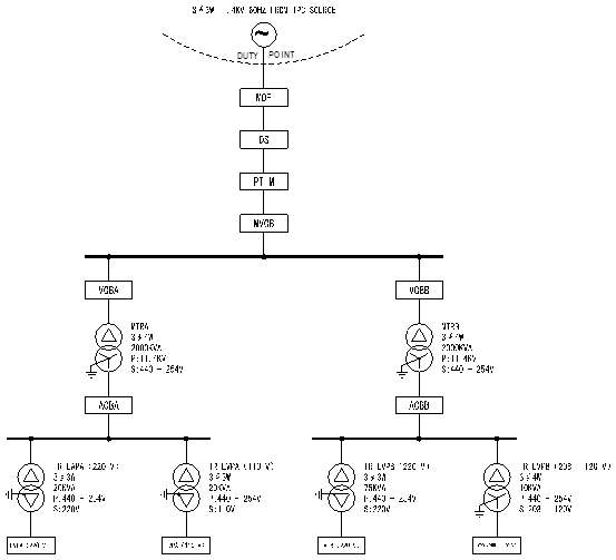 - 低壓幹線:幹線、次幹線及分路均採用線槽(DUCT),PVC管與600V XLPE電纜線之組合。