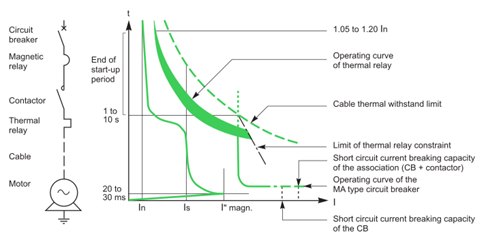 電動機電路之過電流保護旨在保護短路時之過電流,而不保護過負載,其額定值得大於導線之許可載電流量。該額定值之選定,務使電動機啟動時,不致於使熔線熔斷或斷路器跳脫而啟斷電路。分路過電流保護器若為反時性之斷路器(即一般用之NFB)則為 1.5 倍至 2.5 倍。