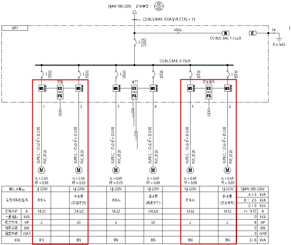 需能承受各分路之最大負載電流及部分啟動電流。若各電動機不同時啟動時, 其額定電流應為各分路中最大額定電動機之全載電流1.5倍, 在與其他電動機額定電流之和。