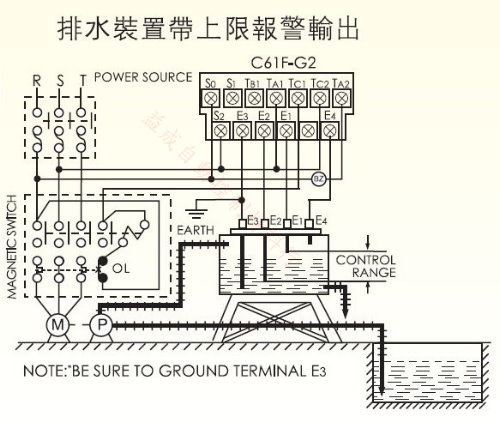 - 排水(汙水、廢水)交並控制盤,高水位啟動排水,低水位關閉