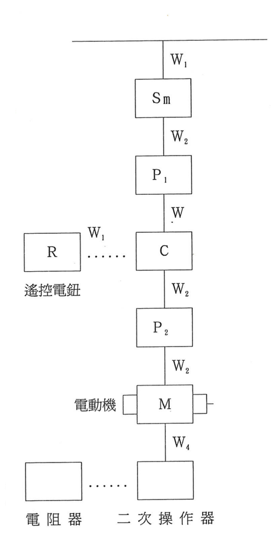 - 二次線(W4):繞線型電動機自轉子至二次操作器間之二次線。其載流量應不低於二次全載電流之一‧二五倍。但非連續性負載,得以溫升限制為條件,選擇較小導線。