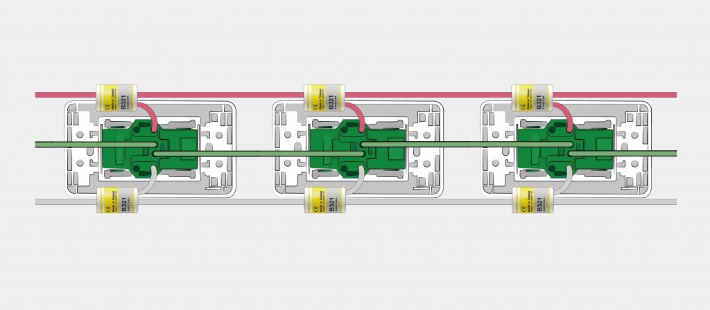 - 優點︰插座電流負載獨立、插座迴路較不受個別插座影響、施做快速確實