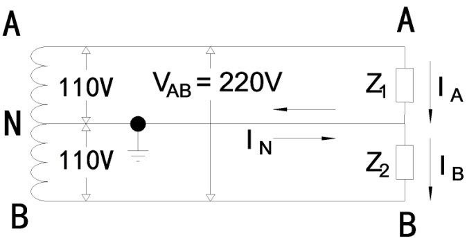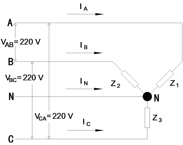 IBN = (3 KW / 0.7)/(0.22 KV) = 19.5 A(由B經Z2流向N)