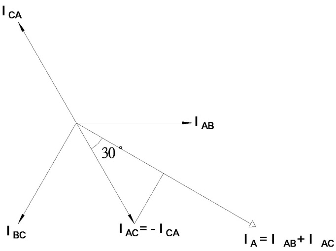 IA = IAB + IAC,IB = IBA + IBC,IC = ICA + ICB (向量和)