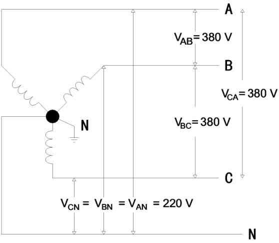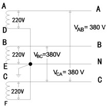PS:連接AB取線電壓 220V,連接AN或BN取相電壓 110V,提供單相設備用電。